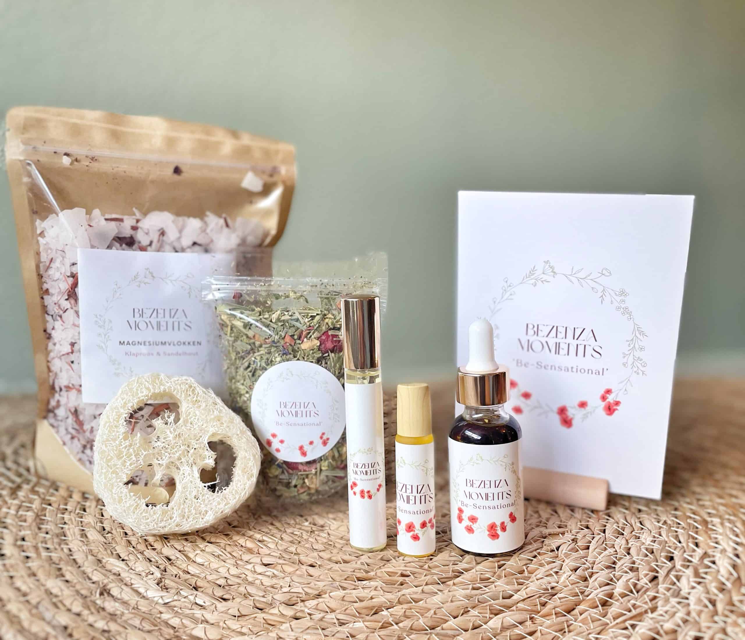 Met o.a. de Be- Sensational geurset met drie producten, alle Klankmomenten van Be-Sensational, bijpassende theesoort van Pluk&Proef, een luva-spons, magnesiumbadzout met gedroogde Klaproos & rood Sandelhout, een boekje vol uitleg en toepasbare suggesties om deze beleving zo mooi en persoonlijk mogelijk te maken. Allemaal passens bij de BE-levenis waar jij voor kiest.